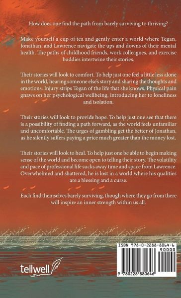 How does one find the path from barely surviving to thriving? Make yourself a cup of tea and gently enter a world where Tegan, Jonathan, and Lawrence navigate the ups and downs of their mental health. The paths of childhood friends, work colleagues, and exercise buddies intertwine their stories. Their stories will look to comfort. To help just one feel a little less alone in the world, hearing someone else's story and sharing the thoughts and emotions. Injury strips Tegan of the life that she knows. Physical pain gnaws on her psychological wellbeing, introducing her to loneliness and isolation. Their stories will look to provide hope. To help just one see that there is a possibility of finding a path forward, as the world feels unfamiliar and uncomfortable. The urges of gambling get the better of Jonathan, as he silently suffers paying a price much greater than the money lost. Their stories will look to heal. To help just one be able to begin making sense of the world and become open to telling their story. The volatility and pace of professional life sucks away time and space from Lawrence. Overwhelmed and shattered, he is lost in a world where his qualities are a blessing and a curse. Each find themselves barely surviving, though where they go from there will inspire an inner strength within us all.