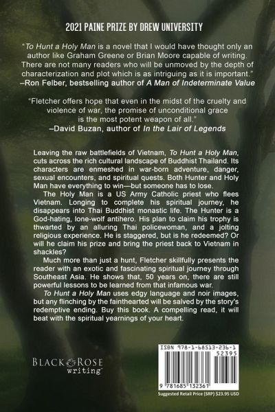 "To Hunt a Holy Man brings to mind the likes of Graham Greene and Brian Moore. Readers will be moved by the depth of characterization and plot which is as intriguing as it is important." -Ron Felber, bestselling author of A Man of Indeterminate Value Leaving the raw battlefields of Vietnam, To Hunt a Holy Man, cuts across the rich cultural landscape of Buddhist Thailand. Its characters are enmeshed in war-born adventure, danger, sexual encounters, and spiritual quests. Both Hunter and Holy Man have everything to win-but someone has to lose. The Holy Man is a US Army Catholic priest who flees Vietnam. Longing to complete his spiritual journey, he disappears into Thai Buddhist monastic life. The Hunter is a God-hating, lone-wolf antihero. His plan to claim his trophy is thwarted by an alluring Thai policewoman, and a jolting religious experience. He is staggered, but is he redeemed? Or will he claim his prize and bring the priest back to Vietnam in shackles? Much more than just a hunt, Fletcher skillfully presents the reader with an exotic and fascinating spiritual journey through Southeast Asia. He shows that, 50 years on, there are still powerful lessons to be learned from that infamous war. To Hunt a Holy Man uses edgy language and noir images, but any flinching by the fainthearted will be salved by the story's redemptive ending. Buy this book. A compelling read, it will beat with the spiritual yearnings of your heart.
