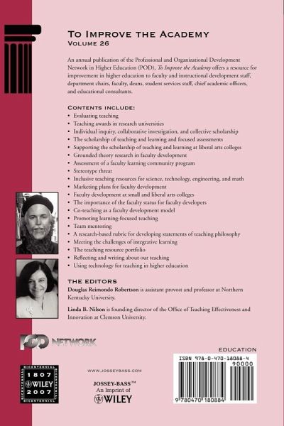 To Improve the Academy Volume 26 An annual publication of the Professional and Organizational Development Network in Higher Education (POD), To Improve the Academy offers a resource for improvement in higher education to faculty and instructional development staff, department chairs, faculty, deans, student services staff, chief academic officers, and educational consultants. Contents include: * Evaluating teaching * Teaching awards in research universities * Individual inquiry, collaborative investigation, and collective scholarship * The scholarship of teaching and learning and focused assessments * Supporting the scholarship of teaching and learning at liberal arts colleges * Grounded theory research in faculty development * Assessment of a faculty learning community program * Stereotype threat * Inclusive teaching resources for science, technology, engineering, and math * Marketing plans for faculty development * Faculty development at small and liberal arts colleges * The importance of the faculty status for faculty developers * Co-teaching as a faculty development model * Promoting learning-focused teaching * Team mentoring * A research-based rubric for developing statements of teaching philosophy * Meeting the challenges of integrative learning * The teaching resource portfolio * Reflecting and writing about our teaching * Using technology for teaching in higher education
