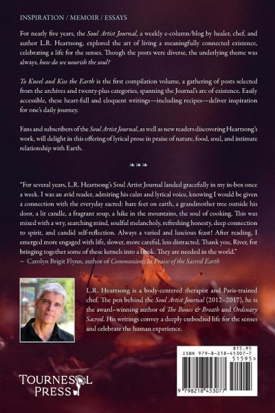 "I've been reading your archives... reading and rereading everything I could find. You are an amazing creature. Bravissimo..." - Marlena de Blasi, internationally bestselling author of A Thousand Days in Venice and A Thousand Days in Tuscany For nearly five years, the Soul Artist Journal, a weekly e-column/blog by healer, chef, and author L.R. Heartsong, explored the art of living a meaningfully connected existence, celebrating "a life for the senses." Though the posts were diverse, the underlying theme was always, how do we nourish the soul? TO KNEEL AND KISS THE EARTH is the first compilation volume in an anthology, a gathering of posts selected from the archives and twenty-plus categories, spanning the Journal's arc of existence. Easily accessible, these heart-full and eloquent writings - including recipes - deliver inspiration for one's daily journey. Fans and subscribers of the Soul Artist Journal, as well as new readers discovering Heartsong's award-winning work, will delight in this freshly updated, second edition. An offering of lyrical prose in praise of nature, food, soul, and intimate relationship with Earth.