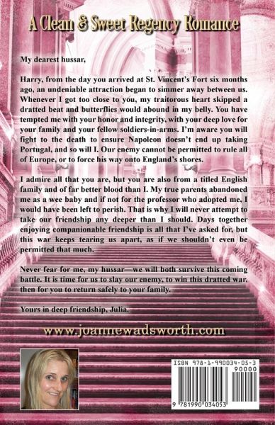 To Love During War is the sweet/tame version of The Wartime Bride. My dearest hussar, Harry, from the day you arrived at St. Vincent's Fort six months ago, an undeniable attraction began to simmer away between us. Whenever I got too close to you, my traitorous heart skipped a dratted beat and butterflies would abound in my belly. You have tempted me with your honor and integrity, with your deep love for your family and your fellow soldiers-in-arms. I'm aware you will fight to the death to ensure Napoleon doesn't end up taking Portugal, and so will I. Our enemy cannot be permitted to rule all of Europe, or to force his way onto England's shores. I admire all that you are, but you are also from a titled English family and of far better blood than I. My true parents abandoned me as a wee baby and if not for the professor who adopted me, I would have been left to perish. That is why I will never attempt to take our friendship any deeper than I should. Days together enjoying companionable friendship is all that I've asked for, but this war keeps tearing us apart, as if we shouldn't even be permitted that much. Never fear for me, my hussar-we will both survive this coming battle. It is time for us to slay our enemy, to win this dratted war, then for you to return safely to your family. Yours in deep friendship, Julia. Each book in this series is standalone, and can be enjoyed out of sequence. SWEET REGENCY TALES SERIES The Duke Who Stole My Heart, #1 The Earl I Adore, #2 To Love During War, #3 My Secret and the Earl, #4 The Prince Who Captured Me, #5 Beware of the Pirate Prince, #6 My Infamous Corsair, #7Must Love Pirates, #8