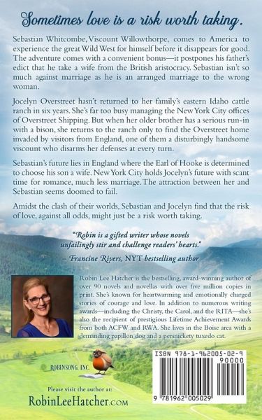 Sometimes love is a risk worth taking. Sebastian Whitcombe, Viscount Willowthorpe, comes to America to experience the great Wild West for himself before it disappears for good. The adventure comes with a convenient bonus-it postpones his father's edict that he take a wife from the British aristocracy. Sebastian isn't so much against marriage as he is an arranged marriage to the wrong woman. Jocelyn Overstreet hasn't returned to her family's eastern Idaho cattle ranch in six years. She's far too busy managing the New York City offices of Overstreet Shipping. But when her older brother has a serious run-in with a bison, she returns to the ranch only to find the Overstreet home invaded by visitors from England, one of them a disturbingly handsome viscount who disarms her defenses at every turn. Sebastian's future lies in England where the Earl of Hooke is determined to choose his son a wife. New York City holds Jocelyn's future with scant time for romance, much less marriage. The attraction between her and Sebastian seems doomed to fail. Amidst the clash of their worlds, Sebastian and Jocelyn find that the risk of love, against all odds, might just be a risk worth taking.