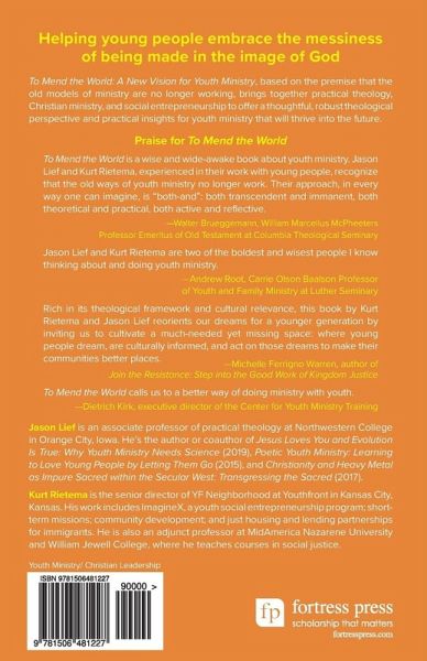 "To mend the world: a new vision for youth ministry, based on the premise that the old models of ministry are no longer working, brings together practical theology, Christian ministry, and social entrepreneurship to offer a thoughtful, robust theological perspective and practical insights for youth ministry that will thrive into the future."--Publisher's description, page 4 of cover.