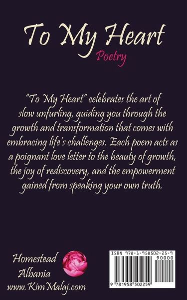"To My Heart" celebrates the art of slow unfurling, guiding you through the growth and transformation that comes with embracing life's challenges. Each poem acts as a poignant love letter to the beauty of growth and the joy of rediscovery,