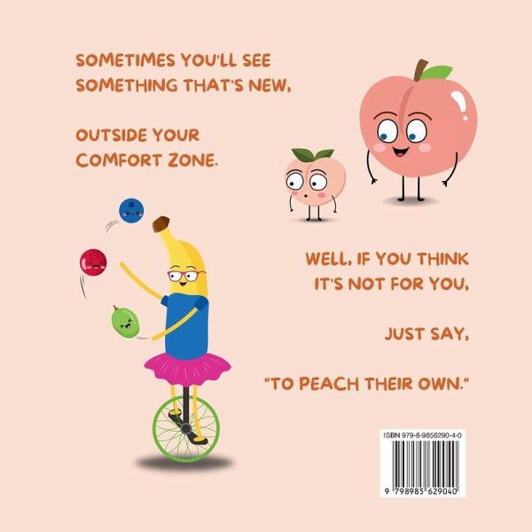 Encourage kids to love more and judge less with "To Peach Their Own." From unique games and joyful songs to varied shapes, sizes, and styles, this book is a delightful reminder to live and let live. With an open mind and a kind heart, let's all say, "To Peach Their Own!" "Sometimes you'll see something that's new, outside your comfort zone. Well, if you think it's not for you, just say, "To Peach Their Own." Do you see somebody-not like you-who lives a different way? Perhaps you should ignore it and just go about your day. 'Cause we're not all alike, and that's a good thing, I must say. We all have our own preferences in how we live and play. So if you see a person, born next door, or far away, Remember! They're both valid. They're both good. They're both okay."