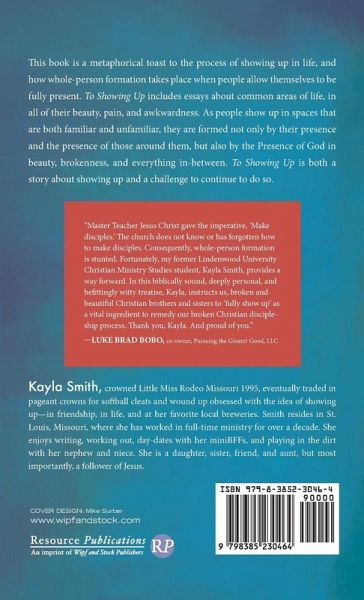 Kayla Smith, crowned Little Miss Rodeo Missouri 1995, eventually traded in pageant crowns for softball cleats and wound up obsessed with the idea of showing up--in friendship, in life, and at her favorite local breweries. Smith resides in St. Louis, Missouri, where she has worked in full-time ministry for over a decade. She enjoys writing, working out, day-dates with her mini BFFs, and playing in the dirt with her nephew and niece. She is a daughter, sister, friend, and aunt, but most importantly, a follower of Jesus.