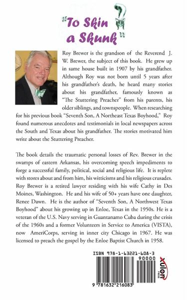 Roy Brewer is the grandson of the Reverend J. W. Brewer, the subject of this book. He grew up in same house built in 1907 by his grandfather. Although Roy was not born until 5 years after his grandfather's death, he heard many stories about his grandfather, famously known as"The Stuttering Preacher" from his parents, his older siblings, and townspeople. When researching for his previous book "Seventh Son, A Northeast Texas Boyhood," Roy found numerous anecdotes and testimonials in local newspapers across the South and Texas about his grandfather. The stories motivated him write about the Stuttering Preacher. The book details the traumatic personal losses of Rev. Brewer in the swamps of eastern Arkansas, his overcoming speech impediments to forge a successful family, political, social and religious life. It is replete with stores about and from him, his witticisms and his religious crusades. Roy Brewer is a retired lawyer residing with his wife Cathy in Des Moines, Washington. He and his wife of 50+ years have one daughter, Renee Dawn. He is the author of "Seventh Son, A Northwest Texas Boyhood" about his growing up in Enloe, Texas in the 1950s. He is a veteran of the U.S. Navy serving in Guantanamo Cuba during the crisis of the 1960s and a former Volunteers in Service to America (VISTA), now AmeriCorps, serving in inner city Chicago in 1967. He was licensed to preach the gospel by the Enloe Baptist Church in 1958.