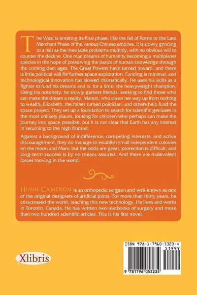 The West is entering its final phase, like the fall of Rome or the Late Merchant Phase of the various Chinese empires. It is slowly grinding to a halt as the inevitable problems multiply, with no obvious will to counter the decline. One man dreams of humanity becoming a multiplanet species in the hope of preserving the basics of human knowledge through the coming dark ages. The Great Powers have turned inward, and there is little political will for further space exploration. Funding is minimal, and technological innovation has slowed dramatically. He uses his skills as a fighter to fund his dreams and is, for a time, the heavyweight champion. Using his notoriety, he slowly gathers friends, seeking to find those who can make the dream a reality. Manon, who claws her way up from nothing to wealth; Elizabeth, the miner turned politician; and others help fund the space project. They set up a foundation to search for scientific geniuses in the most unlikely places, looking for children who perhaps can make the journey into space possible, but it is not clear that Earth has any interest in returning to the high frontier. Against a background of indifference, competing interests, and active discouragement, they do manage to establish small independent colonies on the moon and Mars; but the odds are great, protection is difficult, and long-term success is by no means assured. And there are malevolent forces moving in the world.