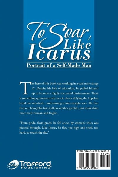 The hero of this book was working in a coal mine at age twelve. Despite his lack of education, he pulled himself up to become a highly successful businessman. There is something quintessentially heroic about defying the hopeless hand one was dealt . . . and turning it into straight aces. The fact that our hero John lost it all on another gamble just makes him more truly human and fragile. "From pride, from greed, he fell anew; by woman's wiles was pierced through. Like Icarus, he flew too high and tried too hard to touch the sky."