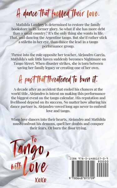 Mathilda Landrey is determined to restore the family bookstore to its former glory. So what if she has more debt than a small country? It’s the only thing she wants in life. That, and dancing the Argentine tango. But she’d rather stick a stiletto in her eye, than dance the lead in a tango performance group. Thrust into the role opposite her teacher, Alejandro Garcia, Mathilda’s safe little haven suddenly becomes Nightmare on Tango Street. When disaster strikes, she is torn between saving her family legacy or creating one of her own. A decade after an accident that ended his chances at the world title, Alejandro is intent on making this performance the biggest event on the tango calendar. His reputation and livelihood depend on its success. No matter how alluring his dance partner is, Alejandro vowed long ago never to embroil love and tango. When love dances into their hearts, Alejandro and Mathilda must quell her doubts, confront his demons and conquer their fears. Or burn the floor trying.