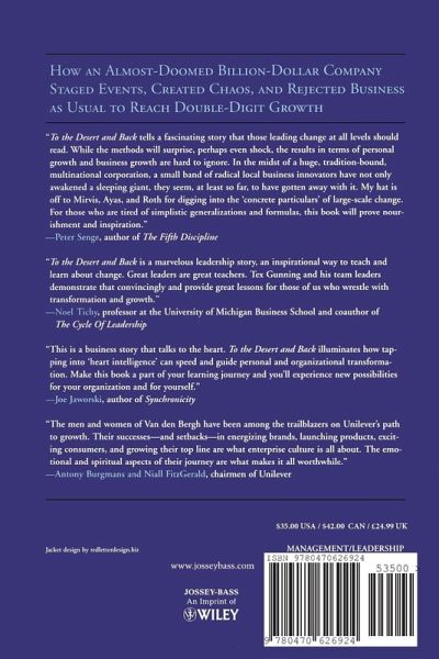 "To the Desert and Back tells a fascinating story that those leading change at all levels should read. While the methods will surprise, perhaps even shock, the results in terms of personal growth and business growth are hard to ignore. In the midst of a huge, tradition-bound, multinational corporation, a small band of radical local business innovators have not only awakened a sleeping giant, they seem, at least so far, to have gotten away with it. My hat is off to Mirvis, Ayas, and Roth for digging into the 'concrete particulars' of large-scale change. For those who are tired of simplistic generalizations and formulas, this book will prove nourishment and inspiration." -Peter Senge, author of The Fifth Discipline "To the Desert and Back is a marvelous leadership story, an inspirational way to teach and learn about change. Great leaders are great teachers. Tex Gunning and his team leaders demonstrate that convincingly and provide great lessons for those of us who wrestle with transformation and growth." -Noel Tichy, professor at the University of Michigan Business School and coaut hor of The Cycle Of Leadership "This is a business story that talks to the heart. To the Desert and Back illuminates how tapping into 'heart intelligence' can speed and guide personal and organizational transformation. Make this book a part of your learning journey and you'll experience new possibilities for your organization and for yourself." -Joe Jaworski, author of Synchronicity "The men and women of Van den Bergh have been among the trailblazers on Unilever's path to growth. Their successes- and setbacks- in energizing brands, launching products, exciting consumers, and growing their top line is what enterprise culture is all about. The emotional and spiritual aspects of their journey is what makes it all worthwhile." -Antony Burgmans and Niall FitzGerald, chairmen of Unilever