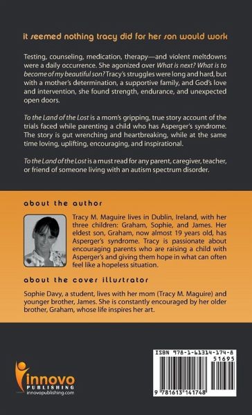 ABOUT THE BOOK: It seemed nothing Tracy did for her son would work-testing, counseling, medication, therapy-and violent meltdowns were a daily occurrence. She agonized over What is next? What is to become of my beautiful son? Tracy's struggles were long and hard, but with a mother's determination, a supportive family, and God's love and intervention, she found strength, endurance, and unexpected open doors. To the Land of the Lost is a mom's gripping, true story account of the trials faced while parenting a child who has Asperger's syndrome. The story is gut wrenching and heartbreaking, while at the same time loving, uplifting, encouraging, and inspirational. To the Land of the Lost is a must read for any parent, caregiver, teacher, or friend of someone living with an autism spectrum disorder. **** ABOUT THE AUTHOR: Tracy M. Maguire lives in Dublin, Ireland, with her three children: Graham, Sophie, and James. Her eldest son, Graham, now almost 19 years old, has Asperger's syndrome. Tracy is passionate about encouraging parents who are raising a child with Asperger's and giving them hope in what can often feel like a hopeless situation.