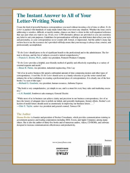 A hands-on, easy-to-use guide for effective letter writing and business communications for the busy manager and executive. This is not a book of techniques on grammar, but rather a ready-to-use collection of more than 350 model letters, and with 1,600 different phrases.