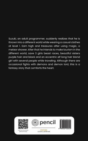Suzuki, an adult programmer, suddenly realizes that he is thrown into a different world while wearing a casual clothes at level 1. Earn high and treasures after using magic, a meteor shower. After that he intends to make tourism in the different world, save 3 girls beast races, beautiful sisters purple hair and black and an eccentric elf long hair blond girl with several people while traveling. Although there are occasional fights with demons and demon lord, this is a fantasy story that comforts the heart.