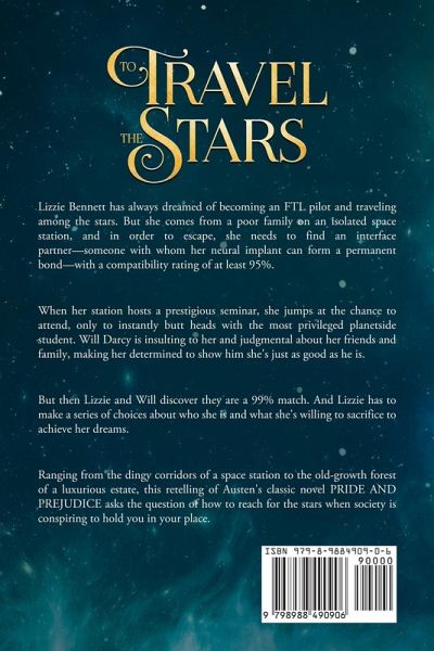 Lizzie Bennett has always dreamed of becoming an FTL pilot and traveling among the stars. But she comes from a poor family on an isolated space station, and in order to escape, she needs to find an interface partner-someone with whom her neural implant can form a permanent bond-with a compatibility rating of at least 95%. When her station hosts a prestigious seminar, she jumps at the chance to attend, only to instantly butt heads with the most privileged planetside student. Will Darcy is insulting to her and judgmental about her friends and family, making her determined to show him she's just as good as he is. But then Lizzie and Will discover they are a 99% match. And Lizzie has to make a series of choices about who she is and what she's willing to sacrifice to achieve her dreams. Ranging from the dingy corridors of a space station to the old-growth forest of a luxurious estate, this retelling of Austen's classic novel PRIDE AND PREJUDICE asks the question of how to reach for the stars when society is conspiring to hold you in your place.