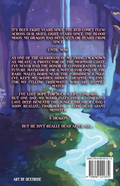 It's been eight years since the red comet flew across our skies. Eight years since the blood moon. No dragon has been seen or heard from since. Until now. As one of the guardians of my tribe, I'm known as Milaye, a Protector of the Mermaid Coast. I've never had the honor of consideration as a future matriarch or a match for one of the rare males born near the Forbidden Jungle. I've kept my wishes hidden-despite my envy for my fellow tribemates who are happily mated. I've lost hope for such a life long ago. But one day, my ward flees into a long lost cave deep beneath the jungle brush. A cave, I soon realize, that holds a long-dead giant monster. A dragon. But he isn't really dead after all...