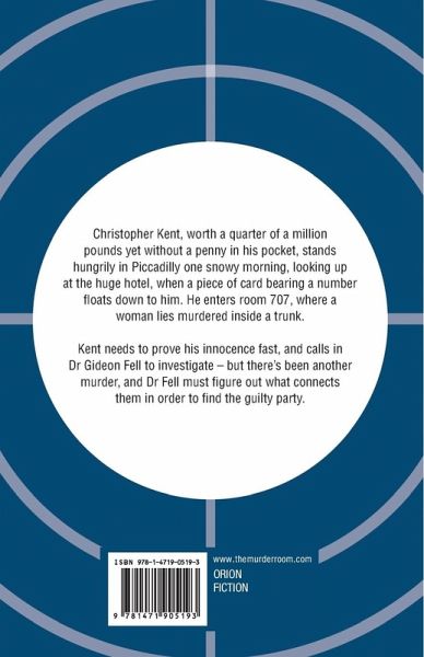 Christopher Kent, worth a quarter of a million pounds yet without a penny in his pocket, stands hungrily in Piccadilly one snowy morning, looking up at the huge hotel, when a piece of card bearing a number floats down to him. He enters and is served with breakfast, giving the waiter the room number. Then an unlucky chance compels him to go up to room 707. Inside a woman lies murdered in a trunk. Kent needs to prove his innocence fast, and calls in Dr Gideon Fell to investigate - but there's been another murder, and Dr Fell must figure out what connects them in order to find the guilty party.