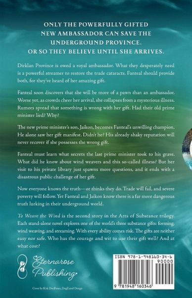Only the powerfully gifted new ambassador can save the underground province. Or so they believe until she arrives. Dirklan Province is owed a royal ambassador. What they desperately need is a powerful streamer to restore the trade cataracts. Fanteal should provide both, for they've heard of her amazing gift. Fanteal soon discovers that she will be more of a pawn than an ambassador. Worse yet, as crowds cheer her arrival, she collapses from a mysterious illness. Rumors spread that something is wrong with her gift. Had their old prime minister lied? Why? The new prime minister's son, Jaikon, becomes Fanteal's unwilling champion. He alone saw her gift manifest. Didn't he? His already shaky reputation will never recover if she possesses the wrong gift. Fanteal must learn what secrets the last prime minister took to his grave. What did he know about wind weavers and this so-called illness? But her visit to his private library just spawns more questions, and it ends with a disastrous public challenge of her gift. Now everyone knows the truth-or thinks they do. Trade will fail and severe poverty will follow. Yet Fanteal and Jaikon know there is a far more dangerous truth lurking in their underground world. To Weave the Wind is the second story in the Arts of Substance trilogy. Each stand-alone novel explores one of the world's three substance gifts: forming, wind weaving, and streaming. With every ability comes risk. The gifts are neither easy nor safe. Who has the courage and wit to use their gift well? And at what cost?