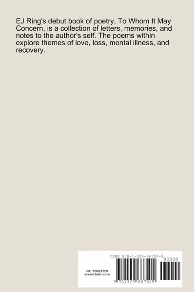 A selection of poems by author EJ Ring. These poems reflect EJ Ring's journey through life, gender expression, and mental illness recovery. This is EJ Ring's first book.