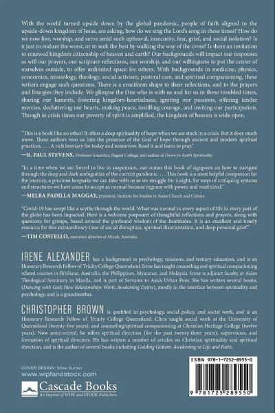 With the world turned upside down by the global pandemic, people of faith aligned to the upside-down kingdom of Jesus, are asking, how do we sing the Lord's song in these times? How do we now live, worship, and serve amid such upheaval, insecurity, fear, grief, and social isolation? Is it just to endure the worst, or to seek the best by walking the way of the cross? Is there an invitation to renewed kingdom citizenship of heaven and earth? Our backgrounds will impact our responses as will our prayers, our scripture reflections, our worship, and our willingness to put the center of ourselves outside, to offer unlimited space for others. With backgrounds in medicine, physics, economics, missiology, theology, social activism, pastoral care, and spiritual companioning, these writers engage such questions. There is a cruciform shape to their reflections, and to the prayers and liturgies they include. We glimpse the One who is with us and for us in these troubled times, sharing our laments, fostering kingdom-heartedness, igniting our passions, offering tender mercies, decluttering our hearts, making peace, instilling courage, and inviting our participation. Though in crisis times our poverty of spirit is amplified, the kingdom of heaven is wide open. With contributions from: Terry Gatfield Athena Gorospe Ross McKenzie Tim MCowan Paul Mercer Sarah Nicholl Charles Ringma