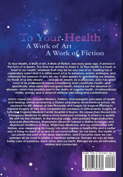 To Your Health is a heartfelt journey into what it truly means to live well. Written by Dr John Mills, a physician with a deep passion for holistic health and how we can experience life optimally according to our dreams, the book celebrates life and encourages us to embrace and enhance who we are. Drawing on a rich career that spans Western, Eastern, and energetic healing practices, Dr Mills explores what it takes to achieve extraordinary vitality, energy, and contentment. His journey-from Yale and Tufts to studying Yoga, Ayurveda, and Shamanism-has led to a profound understanding of well-being, which he shares with warmth and wisdom. This book is a toast to our health, our dreams, and our connection to the world. Whether we are seeking inspiration, better health, or more joy in life, To Your Health offers a compassionate and inspiring guide.