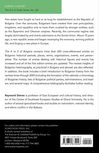 The A to Z of Bulgaria contains more than 600 cross-referenced entries on Bulgarian historical periods, places, terms, organizations, events, and personalities. The number of entries, dealing with historical figures and events, has been considerably enlarged, and all of the entries of the first edition that have remained were carefully updated. The newest insights of Bulgarian historiography as practiced in Bulgaria and abroad are also reflected. In addition, the book includes a brief introduction into Bulgarian history from the earliest times until mid-2005 (including the formation of the current cabinet), an easy-reference chronology of Bulgarian history, several maps, and lists of Bulgarian political parties, administrations, and leaders. A comprehensive bibliography is included to facilitate further reading on Bulgaria and Bulgarian history.