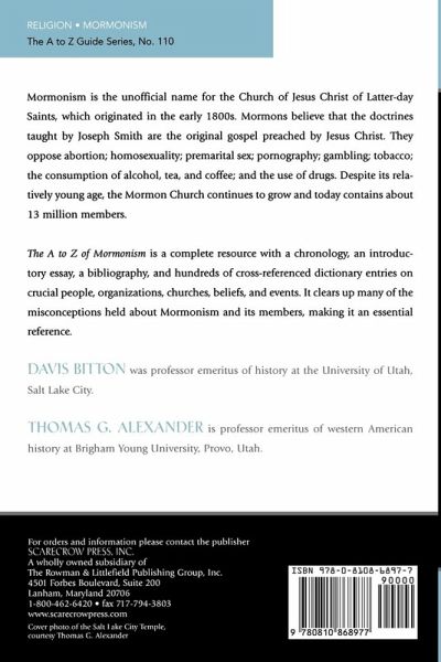 The A to Z of Mormonism relates the history of the Mormon church through a chronology, an introductory essay, a bibliography, and hundreds of cross-referenced dictionary entries on crucial persons, organizations, churches, beliefs, and events. Clearing up many of the misconceptions held about Mormonism and its members, this is an essential reference.