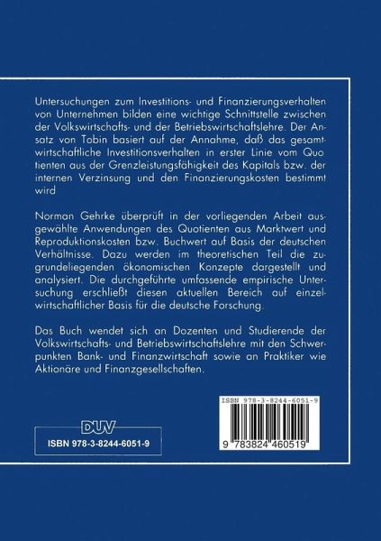 Kennziffern, bei denen ein Marktwert im Zähler steht, spielen in mehreren Teilbereichen der Wirtschaftswissenschaften eine wichtige Rolle. In der neokeynesianischen Investitionstheorie wird der Quotient aus dem Marktwert und dem Reproduktionswert (Tobins Q) benutzt, um die Höhe des gesamtwirtschaftlichen Investitionsvolumens zu erklären und zu prognostizieren. Statt mit dem Quotienten aus dem Marktwert und dem Reproduktionswert zu argumentieren, wird vielfach der Quotient aus der internen Verzinsung und den Finanzierungskosten benutzt, beide sind unter bestimmten Bedingungen identisch. Statt dem in der Betriebswirtschaftslehre üblichen Begriff "interne Verzinsung" werden in der Volkswirtschaftslehre meist die Begriffe "Grenzleistungsfähigkeit des Kapitals" und "Realertragsrate" verwendet. In der Betriebswirtschaftslehre wird der Quotient aus dem Marktwert und dem Buchwert zur Beurteilung von Investitionen, zur Bewertung von Unternehmen, zur Ermittlung von Übernahmekandidaten, zurPrognose von Renditen und Überrenditen, zur Messung der Marktmacht und zur Bestimmung der Eigenkapitalkosten eingesetzt. Da die Anwendungen der genannten Quotienten vorwiegend in der englischsprachigen Literatur diskutiert werden, da sich die vorliegenden empirischen Untersuchungen meist auf die USA beziehen und da eine Fülle von Einzelproblemen im Rahmen der empirischen Schätzung der Kennziffer noch nicht in befriedigender Weise gelöst sind, füllt die Arbeit eine wichtige Lücke in der deutschsprachigen Literatur. Sie stellt eine Grundlage für weitere Forschungen zu diesen Gebieten dar. In Anbetracht dieser Aspekte steht zu erwarten, daß diese Arbeit einen interessierten Leserkreis finden wird.
