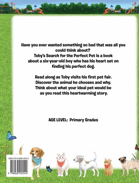 Have you ever wanted something so bad that was all you could think about? Toby's Search for the Perfect Pet is a book about a six-year-old boy who has his heart set on finding his perfect dog. Read along as Toby visits his first pet fair. Discover the animal he chooses and why. Think about what your ideal pet would be as you read this heartwarming story. AGE LEVEL: Primary Grades