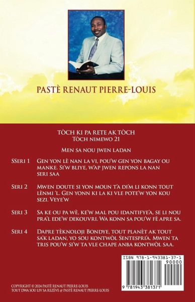 Seri 1 - Gen yon lè nan la vi, pou'w gen yon bagay ou manke. Si'w bliye, w'ap jwen repons la nan seri saa.Seri 2 - Mwen doute si yon moun t'a di'm li konn tout lènmi 'l. Gen yonn ki la ki vle pote'w yon kou sezi. Veye'w.Seri 3 - Sa ke ou pa wè, ke'w mal pou idantifye'a, se li nou pra'l ede'w dekouvri. Wa konn sa pou'w fè apre sa.Seri 4 - Dapre tèknoloji Bondye, tout planèt ak tout sa'k ladan, yo sou kontwòl Sentespri'a. Mwen ta tris pou'w si'w ta vle chape anba kontwòl saa. SERI 1 - OU MANKE YON BAGAY Leson 1 - Nikodèm, ou manke yon bagay Leson 2 - Nonm rich, ou manke yon bagay Leson 3 - Kaptenn Kònèy, ou manke yon bagay Leson 4 - Pòl, ou manke yon bagay Leson 5 - Wa Ozias ou manke yon bagay Leson 6 - Ana, ou manke yon bagay Leson 7 - Naaman, ou manke yon bagay Leson 8 - Farizyen, ou manke yon bagay Leson 9 - Kretyen, ou manke yon bagay Leson 10 - David di li pa manke anyen. Leson 11 - Soti nan Dezè a pou monte sou Kalvè Leson 12 - Soti sou bwa kalvè monte nan laglwa SERI 2 - RENMEN MOUN KI LENMI'W Leson 1 - Lènmi nimewo en (1) : Dyab la Leson 2 - Lènmi nimewo de (2) : Tèt pa nou Leson 3 - Lènmi nimewo twa (3): Lògèy Leson 4 - Lènmi nimewo kat la (4): se inyorans Leson 5 - Lènmi nimewo 5: Moun ki pa dakò ak pawòl nou Leson 6 - Lènmi nimewo 6: Tradisyon nou yo Leson 7 - Lènmi nimewo 7: Moun ki kanpe kont nou Leson 8 - Lènmi nimewo 8 Laperèz Leson 9 - Lènmi nimewo 9: Tanperaman nou Leson 10 - Lènmi nimewo 10 : Foli grandè Leson 11 - Ki jan moun kay ou pale ? Leson 12 - Yon fason yo pale ki bon anpil SERI 3 - MOVE LÈSPRI YO Leson 1 - Tòde panse moun se yon move lèspri Leson 2 - Lespri sal Leson 3 - Lèspri revanj, se yon move lèspri Leson 4 - Lèspri negatif se yon move lèspri Leson 5 - Dekourajman se yon move lèspri Leson 6 - Soud-Bèbè, se yon move lèspri Leson 7 - Zafè prejije a se yon move lèspri Leson 8 - Lespri démon, se yon move lèspri Leson 9 - Pase moun anba rizib se yon move lèspri Leson 10 - Ipokrizi se yon move lèspri Leson 11 - Mechanste se yon move lèspri Leson 12 - Konsekans move lèspri nan yon mounLis vèsè yo SERI 4 - GRAS A SENTESPRI A Leson 1 - Travay Sentespri a lè tè a te fèk dedwanen Leson 2 - Envansyon fèt pa operasyon Sentespri a Leson 3 - Nwaj Chekinaa ki tounen dife nan lanwit. Leson 4 - Ki jan Sentespri a ka makiye yon moun Leson 5 - Lèspri Bondye fè yon transfè Leson 6 - Sentespri a kraze yon manifèstasyon Leson 7 - Sentespri nan pwotokòl adorasyon Leson 8 - Yon match èspirityèl Leson 9 - Sentèspri nan zafè bati Legliz Kris la Leson 10 - Ki jan fèt remèman an ta dwe fete Leson 11 - Bib la, liv ki pa gen konparezon Leson 12 - Ki sa Maj yo fè nou konnen