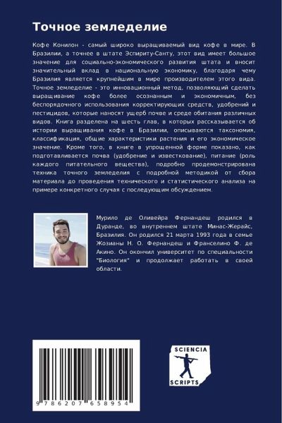 Kofe Konilon - samyj shiroko wyraschiwaemyj wid kofe w mire. V Brazilii, a tochnee w shtate Jespiritu-Santu, ätot wid imeet bol'shoe znachenie dlq social'no-äkonomicheskogo razwitiq shtata i wnosit znachitel'nyj wklad w nacional'nuü äkonomiku, blagodarq chemu Braziliq qwlqetsq krupnejshim w mire proizwoditelem ätogo wida. Tochnoe zemledelie - äto innowacionnyj metod, pozwolqüschij sdelat' wyraschiwanie kofe bolee osoznannym i äkonomichnym, bez besporqdochnogo ispol'zowaniq korrektiruüschih sredstw, udobrenij i pesticidow, kotorye nanosqt uscherb pochwe i srede obitaniq razlichnyh widow. Kniga razdelena na shest' glaw, w kotoryh rasskazywaetsq ob istorii wyraschiwaniq kofe w Brazilii, opisywaütsq taxonomiq, klassifikaciq, obschie harakteristiki rasteniq i ego äkonomicheskoe znachenie. Krome togo, w knige w uproschennoj forme pokazano, kak podgotawliwaetsq pochwa (udobrenie i izwestkowanie), pitanie (rol' kazhdogo pitatel'nogo weschestwa), podrobno prodemonstrirowana tehnika tochnogo zemledeliq s podrobnoj metodikoj ot sbora materiala do prowedeniq tehnicheskogo i statisticheskogo analiza na primere konkretnogo sluchaq s posleduüschim obsuzhdeniem.