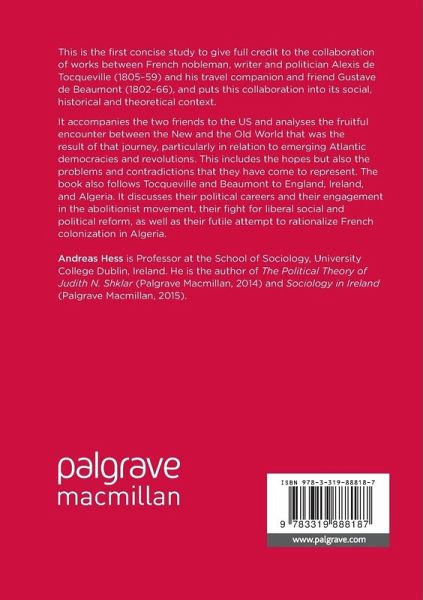 This is the first concise study to give full credit to the collaboration of works between French nobleman, writer and politician Alexis de Tocqueville (1805-59) and his travel companion and friend Gustave de Beaumont (1802-66), and puts this collaboration into its social, historical and theoretical context.