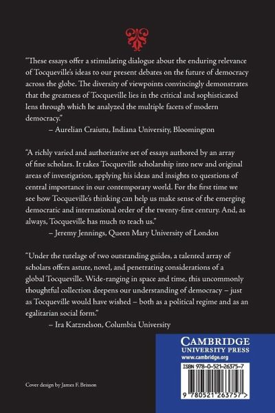 Alexis de Tocqueville is widely cited as an authority on civil society, religion and American political culture, yet his thoughts on democratization outside the West and the challenges of a globalizing age are less known and often misunderstood. This collection of essays by a distinguished group of international scholars explores Tocqueville's vision of democracy in Asia and the Middle East; the relationship between globalization and democracy; colonialism, Islam and Hinduism; and the ethics of international relations. Rather than simply documenting Tocqueville's own thoughts, the volume applies the Frenchman's insights to enduring dilemmas of democratization and cross-cultural exchanges in the twenty-first century. This is one of the few books to shift the focus of Tocqueville studies away from America and Western Europe, expanding the frontiers of democracy and highlighting the international dimensions of Tocqueville's political thought.