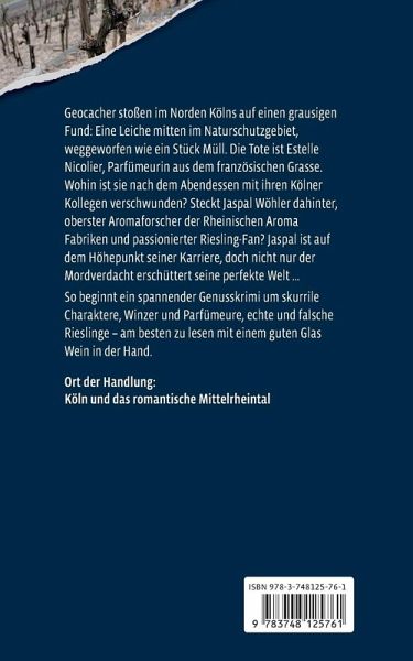 Geocacher stoßen im Norden Kölns auf einen grausigen Fund: Eine Leiche mitten im Naturschutzgebiet, weggeworfen wie ein Stück Müll. Die Tote ist Estelle Nicolier, Parfümeurin aus dem französischen Grasse. Wohin ist sie nach dem Abendessen mit ihren Kölner Kollegen verschwunden? Steckt Jaspal Wöhler dahinter, oberster Aromaforscher der Rheinischen Aromafabriken und passionierter Riesling-Fan? Jaspal ist auf dem Höhepunkt seiner Karriere, doch nicht nur der Mordverdacht erschüttert seine perfekte Welt.So beginnt ein spannender Genusskrimi um skurrile Charaktere, Winzer und Parfümeure, echte und falsche Rieslinge - am besten zu lesen mit einem guten Glas Wein in der Hand.