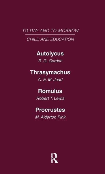 Four volumes bound in one, making available valuable historical documents charting young offenders, conventional morality, the education system in terms of nursery provision and the prospective effect of education on manual labour. These volumes offer direct insights into early twentieth century views on youth and education. Titles include: Autolycus by R G Gordon, Thrasymachus by C E M Joad, Romulus by Robert T Lewis, and Procrustes by M Alderton Pink.