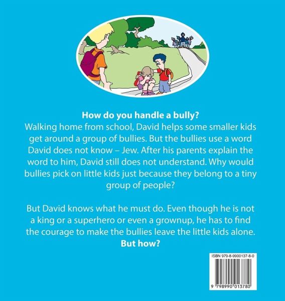 How do you handle a bully? Walking home from school, young David helps some smaller kids escape a gang of bullies. The bullies use a word David does not know - Jew. After his parents explain the word to him, David still does not understand. Why would bullies pick on little kids just because they belong to a tiny group of people? Now, David knows what he must do. Even though he is not a king or a superhero, or even a grownup, he has to find the courage to make the bullies leave the little kids alone.