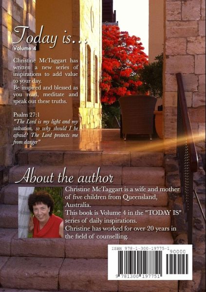 Christine McTaggart has written a new series of inspirations to add value to your day. Be inspired and blessed as you read, meditate and speak out these truths. Psalm 27:1 "The Lord is my light and my salvation, so why should I be afraid? The Lord protects me from danger"