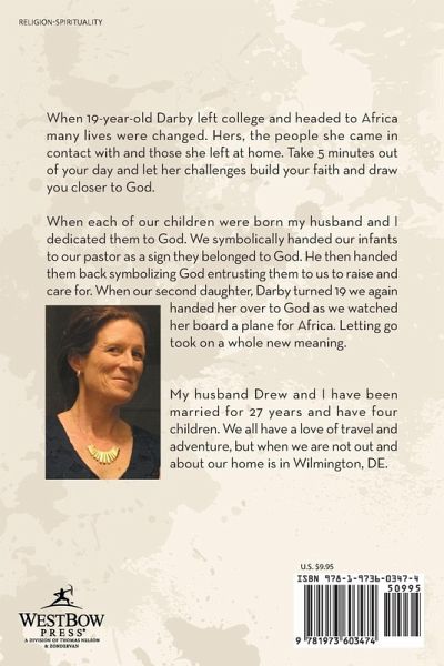 When 19-year-old Darby left college and headed to Africa many lives were changed. Hers, the people she came in contact with and those she left at home. Take 5 minutes out of your day and let her challenges build your faith and draw you closer to God. When each of our children were born my husband and I dedicated them to God. We symbolically handed our infants to our pastor as a sign they belonged to God. He then handed them back symbolizing God entrusting them to us to raise and care for. When our second daughter, Darby turned 19 we again handed her over to God as we watched her board a plane for Africa. Letting go took on a whole new meaning.