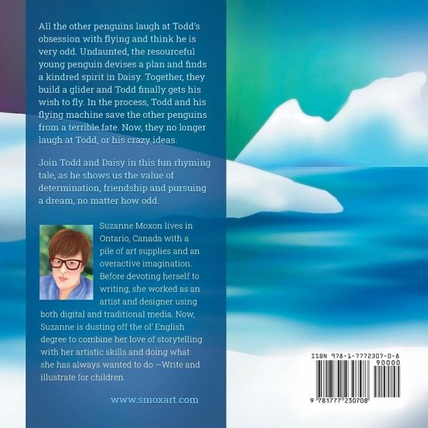All the other penguins laugh at Todd's obsession with flying and think he is very odd. Undaunted, the resourceful young penguin devises a plan and finds a kindred spirit in Daisy. Together, they build a glider and Todd finally gets his wish to fly. In the process, Todd and his flying machine save the other penguins from a terrible fate. Now, they no longer laugh at Todd, or his crazy ideas. This charming tale is set against a backdrop of stunning skies, and drifting icebergs. The rhythm and verse of the story lends itself to reading aloud and will also appeal to early readers. Anyone who has ever had trouble fitting in, or been bullied for being different, will relate to these two charming penguins ¿- the creative and determined Todd, and Daisy, a confident, plucky little penguin who befriends him and helps turn his crazy dream into a reality.