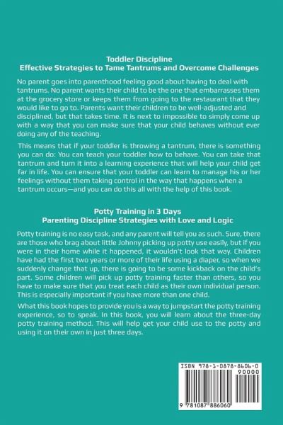 Toddler Discipline Effective Strategies to Tame Tantrums and Overcome ChallengesNo parent goes into parenthood feeling good about having to deal with tantrums. No parent wants their child to be the one that embarrasses them at the grocery store or keeps them from going to the restaurant that they would like to go to. Parents want their children to be well-adjusted and disciplined, but that takes time. It is next to impossible to simply come up with a way that you can make sure that your child behaves without ever doing any of the teaching.This means that if your toddler is throwing a tantrum, there is something you can do: You can teach your toddler how to behave. You can take that tantrum and turn it into a learning experience that will help your child get far in life. You can ensure that your toddler can learn to manage his or her feelings without them taking control in the way that happens when a tantrum occurs-and you can do this all with the help of this book. Potty Training in 3 Days Parenting Discipline Strategies with Love and LogicPotty training is no easy task, and any parent will tell you as such. Sure, there are those who brag about little Johnny picking up potty use easily, but if you were in their home while it happened, it wouldn't look that way. Children have had the first two years or more of their life using a diaper, so when we suddenly change that up, there is going to be some kickback on the child's part. Some children will pick up potty training faster than others, so you have to make sure that you treat each child as their own individual person. This is especially important if you have more than one child.What this book hopes to provide you is a way to jumpstart the potty training experience, so to speak. In this book, you will learn about the three-day potty training method. This will help get your child use to the potty and using it on their own in just three days.