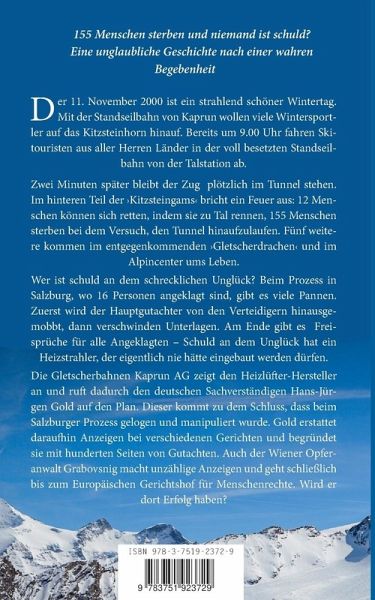 Der 11. November 2000 ist ein strahlend schöner Wintertag. Mit der Standseilbahn von Kaprun wollen viele Wintersportler auf das Kitzsteinhorn hinauf. Bereits um 9.00 Uhr fahren Skitouristen aus aller Herren Länder in der voll besetzten Standseilbahn von der Talstation ab. Zwei Minuten später bleibt der Zug plötzlich im Tunnel stehen. Im hinteren Teil der 'Kitzsteingams' bricht ein Feuer aus: 12 Menschen können sich retten, indem sie zu Tal rennen, 155 Menschen sterben bei dem Versuch, den Tunnel hinaufzulaufen. Fünf weitere kommen im entgegenkommenden Gletscherdrachen' und im Alpincenter ums Leben.Wer ist schuld an dem schrecklichen Unglück? Beim Prozess in Salzburg, wo 16 Personen angeklagt sind, gibt es viele Pannen. Zuerst wird der Hauptgutachter von den Verteidigern hinausgemobbt, dann verschwinden Unterlagen. Am Ende gibt es Freisprüche für alle Angeklagten - Schuld an dem Unglück hat ein Heizstrahler, der eigentlich nie hätte eingebaut werden dürfen.Die Gletscherbahnen Kaprun AG zeigt den Heizlüfter-Hersteller an und ruft dadurch den deutschen Sachverständigen Hans-Jürgen Gold auf den Plan. Dieser kommt zu dem Schluss, dass beim Salzburger Prozess gelogen und manipuliert wurde. Gold erstattet daraufhin Anzeigen bei verschiedenen Gerichten und begründet sie mit hunderten Seiten von Gutachten. Auch der Wiener Opferanwalt Grabovsnig macht unzählige Anzeigen und geht schließlich bis zum Europäischen Gerichtshof für Menschenrechte. Wird er dort Erfolg haben?