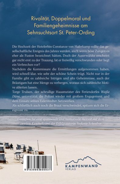 Die Hotelerbin Constanze von Haferkamp freut sich auf Ihre Hochzeit mit dem ebenfalls gut betuchten Konstantin Winkler. Doch der taucht nicht auf. Am Tag zuvor hatten sie sich noch heftig gestritten, aber ihrer Meinung nach wieder versöhnt. Nun bittet Sie Torge Trulsen um Hilfe. Er ist der Hausmeister der Ferienanlage, wo die Hochzeitsgäste untergebracht sind und sie kennen sich von den Verhandlungen zur Hochzeit. Dieser bezieht den örtlichen Polizisten Knut Petersen mit ein. Während Charlotte Wiesinger unterwegs zu ihrer Freundin nach Hamburg ist, um mit ihr ein Konzert der Elbphilharmonie zu besuchen, sind Knut und Torge schon sehr fleißig und haben entsprechende Maßnahmen zur Suche nach dem Bräutigam eingeleitet. Bei den Ermittlungen stoßen sie auf viele Geheimnisse und Intrigen in beiden Familien der Fast-Eheleute.