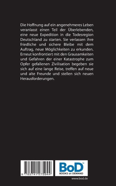 Die Hoffnung auf ein angenehmeres Leben veranlasst einen Teil der Überlebenden, eine neue Expedition in die Todesregion Deutschland zu starten. Sie verlassen ihre friedliche und sichere Bleibe mit dem Auftrag, neue Möglichkeiten zu erkunden. Erneut konfrontiert mit den Grausamkeiten und Gefahren der einer Katastrophe zum Opfer gefallenen Zivilisation, begeben sie sich auf eine lange Reise, treffen auf neue und alte Freunde und stellen sich neuen Herausforderungen.