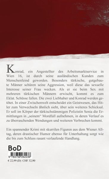 Konrad, ein Angestellter des Arbeitsmarktservice im multikulturellen 16. Wiener Bezirk, ist durch seinen Job zum Menschenfeind geworden. Besonders türkische, gutgebaute Männer schüren seine Aggression, weil diese das sexuelle Interesse seiner Frau wecken. Als er seine Frau im ehelichen Schlafzimmer beim Sex mit mehreren türkischen Männern erwischt, kommt es zum Eklat. Schüsse fallen. Die zwei Liebhaber und Konrad werden getötet. In einer Zwischenwelt entscheidet ein Geistwesen, das Hitler zum Verwechseln ähnlich sieht, über Konrads weiteres Schicksal. Dieser schickt ihn zurück ins Leben mit der Aufgabe, im Körper der türkischstämmigen Polizistin Senia die Ermittlungen in "seinem" Mordfall aufzunehmen, worauf es zu weiteren überraschenden Wendungen und grausamen Verbrechen kommt.