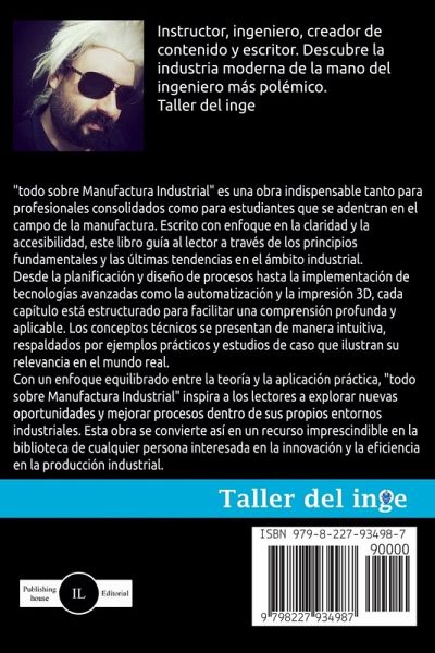 Original de Taller del inge "todo sobre Manufactura Industrial" es una obra indispensable tanto para profesionales consolidados como para estudiantes que se adentran en el campo de la manufactura. Escrito con enfoque en la claridad y la accesibilidad, este libro guía al lector a través de los principios fundamentales y las últimas tendencias en el ámbito industrial. Desde la planificación y diseño de procesos hasta la implementación de tecnologías avanzadas como la automatización y la impresión 3D, cada capítulo está estructurado para facilitar una comprensión profunda y aplicable. Los conceptos técnicos se presentan de manera intuitiva, respaldados por ejemplos prácticos y estudios de caso que ilustran su relevancia en el mundo real. Con un enfoque equilibrado entre la teoría y la aplicación práctica, "todo sobre Manufactura Industrial" inspira a los lectores a explorar nuevas oportunidades y mejorar procesos dentro de sus propios entornos industriales. Esta obra se convierte así en un recurso imprescindible en la biblioteca de cualquier persona interesada en la innovación y la eficiencia en la producción industrial. I. Laisequilla / Taller del inge