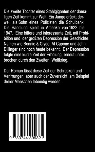 Die amerikanische Geschichte von 1922 bis 1947 ist von extremen Höhen und Tiefen geprägt. Am Beispiel von drei jungen Menschen wird diese spannende Zeit möglichst lebensecht wiedergegeben.Es ist dies zum einen ein Mädchen, mit deren Geburt beginnt am 9. Mai 1922 der Roman. Sie ist die zweite Tochter eines Stahlgiganten der damaligen Zeit.Sie, ihre Schwester und ein ihnen unbekannter Junge, der Sohn eines Polizisten, sind die Hauptfiguren des Romans.An ihrem Beispiel wird die Zeit von 1922-1947 lebendig. Eine bittere und interessante Zeit, mit Prohibition und der größten Depression der Geschichte. Namen wie Bonnie & Clyde, Al Capone und John Dillinger sind noch heute bekannt. Der Depression folgte eine kurze Zeit des Aufstiegs, erneut unterbrochen durch den Zweiten Weltkrieg.Der Roman lässt diese Zeit der Schrecken und Verirrungen, aber auch der Zuversicht, am Beispiel dreier Menschen lebendig werden.