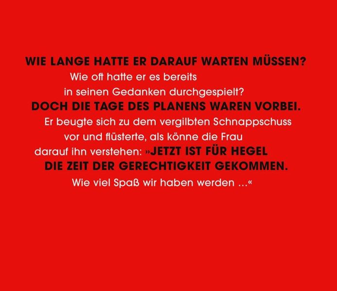 Tatsächlich handelt es sich um Veith Vries, einen ehemaligen Studienfreund und brillanten Kollegen, der vor Jahren zu Hegels erbittertem Feind wurde. Jetzt hat Vries nichts mehr zu verlieren und nur noch ein Ziel: Hegel nehmen, was ihm am wichtigsten ist.