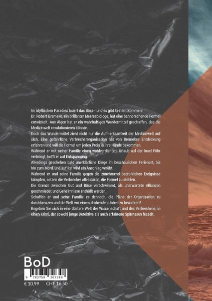Im idyllischen Paradies lauert das Böse - und es gibt kein Entkommen!Dr. Robert Bremeke, ein brillanter Meeresbiologe, hat eine bahnbrechende Formel entwickelt. Aus Algen hat er ein wahrhaftiges Wundermittel geschaffen, das die Medizinwelt revolutionieren könnte. Doch das Wundermittel zieht nicht nur die Aufmerksamkeit der Medizinwelt auf sich. Eine gefährliche Verbrecherorganisation hat von Bremekes Entdeckung erfahren und will die Formel um jeden Preis in ihre Hände bekommen.Während er mit seiner Familie einen wohlverdienten Urlaub auf der Insel Föhr verbringt, hofft er auf Entspannung.Allerdings geschehen bald unerklärliche Dinge im beschaulichen Ferienort, bis hin zum Mord, und auf ihn wird ein Anschlag verübt.Während er und seine Familie gegen die zunehmend bedrohlichen Ereignisse kämpfen, setzen die Verbrecher alles daran, die Formel zu stehlen.Die Grenze zwischen Gut und Böse verschwimmt, als unerwartete Allianzen geschmiedet und Geheimnisse enthüllt werden.Schaffen er und seine Familie es dennoch, die Pläne der Organisation zu durchkreuzen und die Welt vor einem drohenden Unheil zu bewahren?Begeben Sie sich in eine düstere Welt der Wissenschaft und des Verbrechens, in einen Krimi, der sowohl junge Detektive als auch erfahrene Spürnasen fesselt.