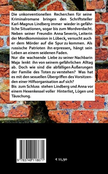 Die unkonventionellen Recherchen für seine Kriminalromane bringen den Schriftsteller Karl-Magnus Lindberg immer wieder in gefährliche Situationen. Nach dem Tod des Hoteliers Hardenberg in Travemünde gerät er selber unter Mordverdacht. Unabhängig von seiner schwesterlichen Freundin Anna Severin, der Leiterin der Mordkommission in Lübeck, versucht auch er, dem Mörder auf die Spur zu kommen. Als zudem russische Patrioten von ihm die Herausgabe eines Buches über Katharina der Großen erpressen, hängt sein Leben nur noch an einem seidenen Faden. Sind sie auch für den Mord an dem Hotelier verantwortlich? Lediglich die wachsende innige Freundschaft zu seiner Nachbarin Maja Wissmann lenkt ihn auf liebevolle Weise von seinem gefahrvollen Alltag ab. Doch wie sind die abfälligen Äußerungen der Familie des Toten aufgrund seines despotischen Verhaltens zu werten? Und was hat es mit den sexuellen Übergriffen des Vorsitzenden einer Hilfsorganisation auf sich? Bis zum Schluss stehen Lindberg und Anna Severin vor einem Hexenkessel voller Hinterlist und Täuschung.