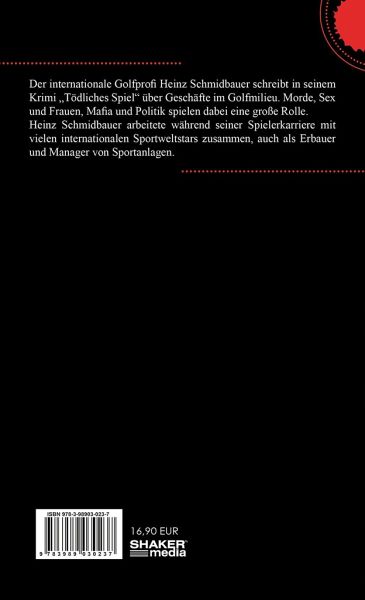 Der Krimi "Tödliches Spiel" ist eine Hintergrundstory aus dem millionenschweren, internationalen Golfgeschäft. Golfprofi Tom Kane kämpft sich durch einen Dschungel aus Mafiageschäften, Frauen, Medien, Morde, Politik & Betrügereien machen ihm das Leben schwer. Ein spannender, lesenswerter Krimi, der auch Nichtgolfer faszinieren dürfte.